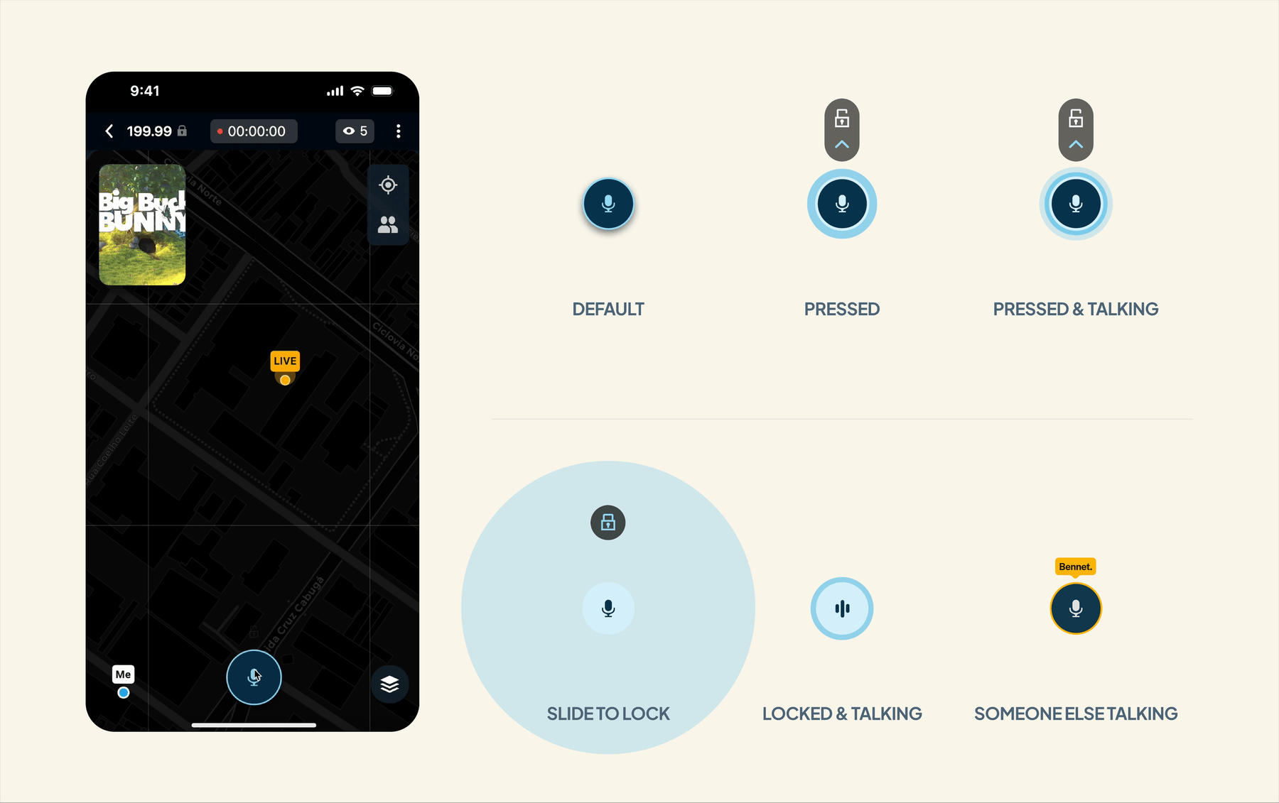 Guardian of the User Experience: During development, the team faced significant technical hurdles in implementing the fluid "Drag-to-Adjust" interaction and the complex multi-state PTT (Push-to-Talk) logic. I maintained the design vision, collaborating closely with engineering to ensure these mission-critical interactions were delivered without compromise.